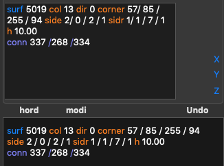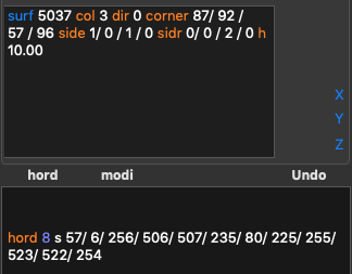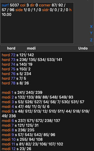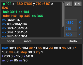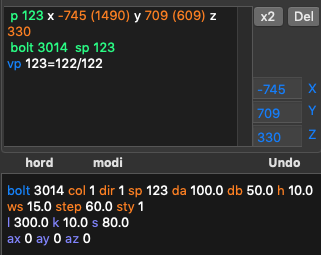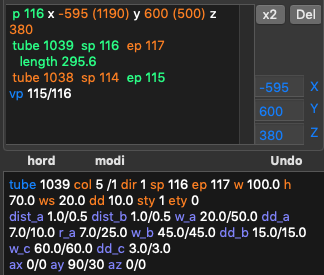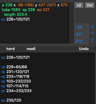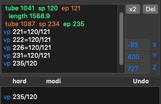 2. Input hord (gray) and modi (orange). In the 3D view red points are regular, white — control, green — unused: