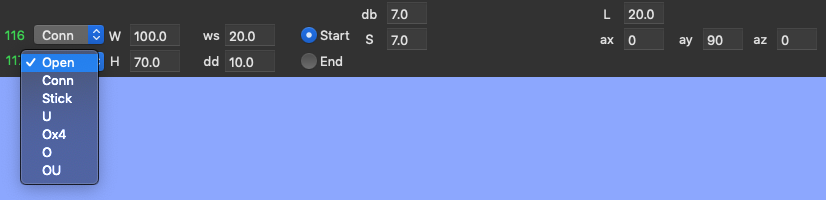 To add a part to your model, simply select the type in the lower-right corner of the app's window, and drag the part from the left of the 2D viewport to the desired location: